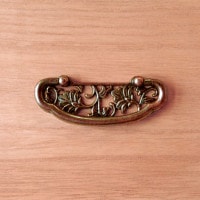 〈柿渋染めに馴染むGB色の取手〉、〈天板角飾り金具〉